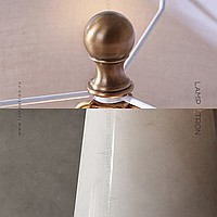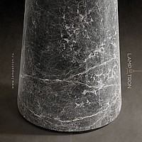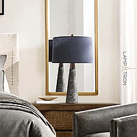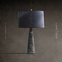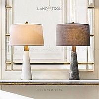 A series of desktop lamps with a cylindrical textile lampshade and a conical base from light and dark marble