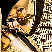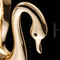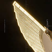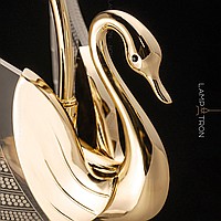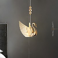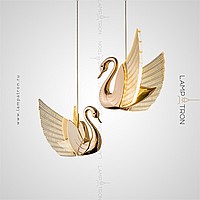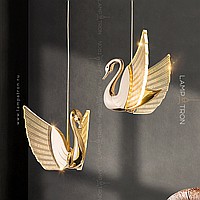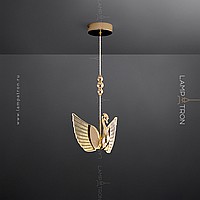 Suspended LED lamp with a swan of a swan with luminous wings and metal beads on a suspension