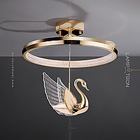 Ceiling LED chandelier on a ring frame with a center suspended ceiling in the form of a swan
