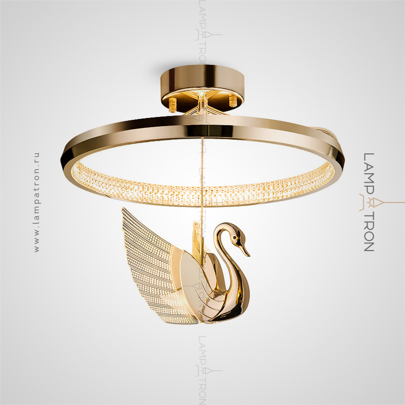 Ceiling LED chandelier on a ring frame with a center suspended ceiling in the form of a swan
