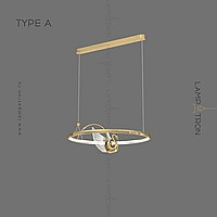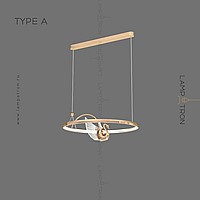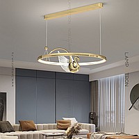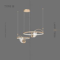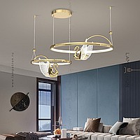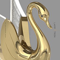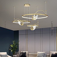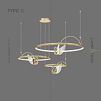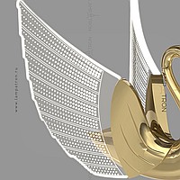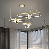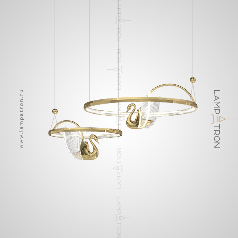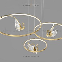 A series of annular LED chandeliers with ceilings in the form of swans with luminous wings on arched holders