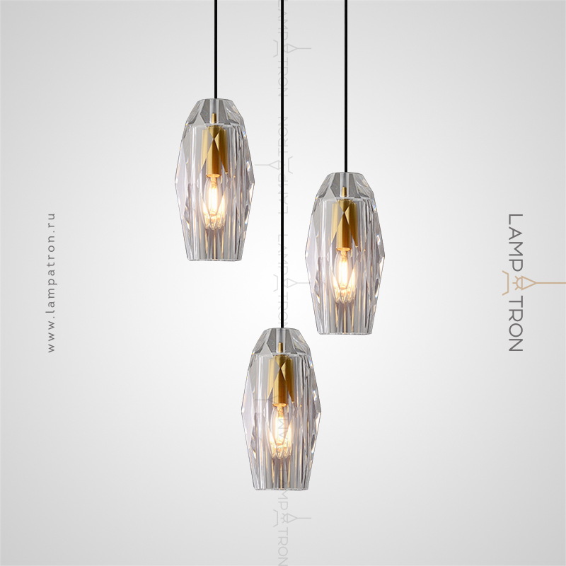 Ready -made combination of suspended lamps with multifaceted crystal -shaped crystal patches
