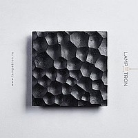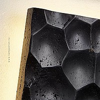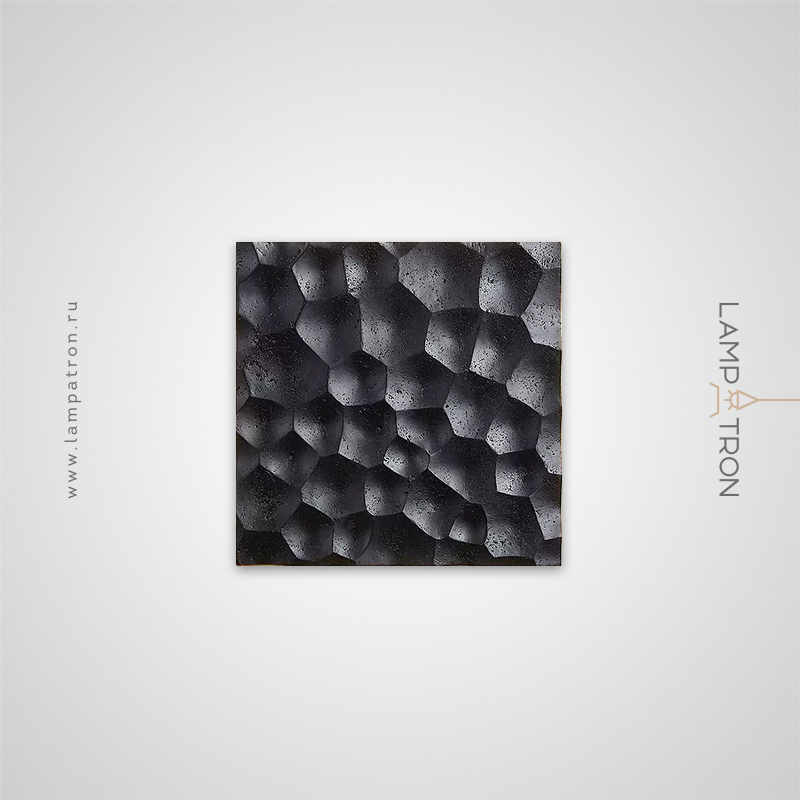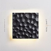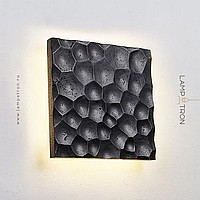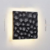 Black travertine square wall lamp with embossed surface and LED lighting