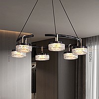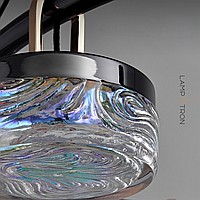 Ring LED chandelier with transparent relief shades with iridescent effect