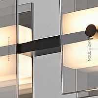A series of slatted LED luminaires with rectangular diffusers made of smoked and amber glass