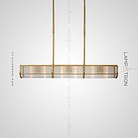 A series of rack lamps with a cylindrical ceiling of thin crystal tubes