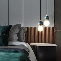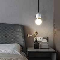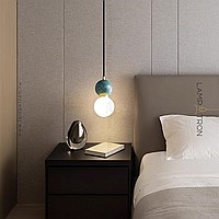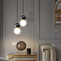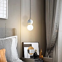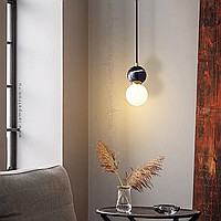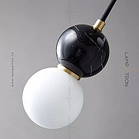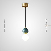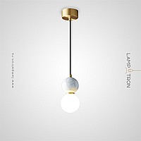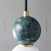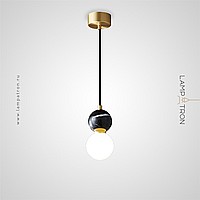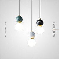 Pendant lamp in the form of a combination of a marble ball and a round glass shade