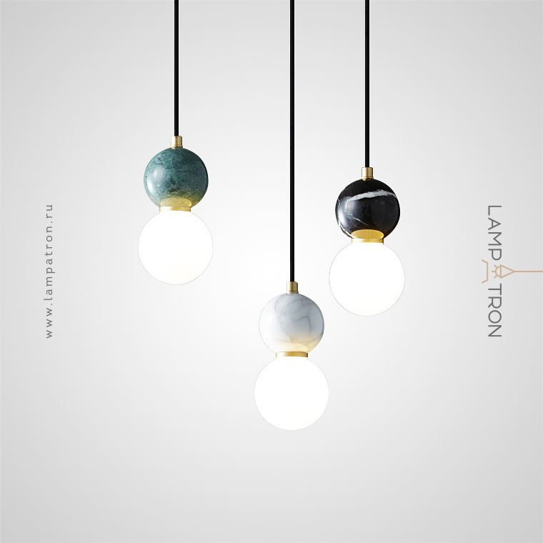 Pendant lamp in the form of a combination of a marble ball and a round glass shade