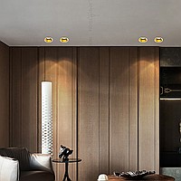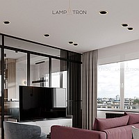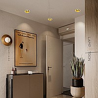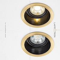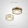 A point built -in a round -shaped lamp with a brass edging