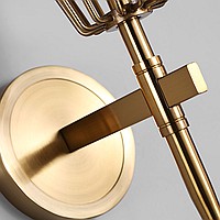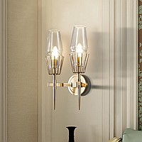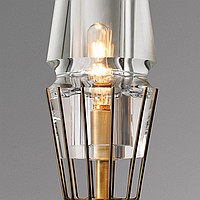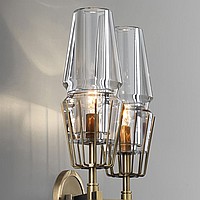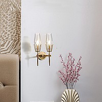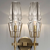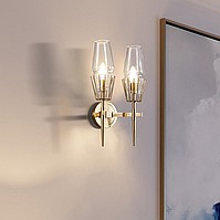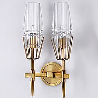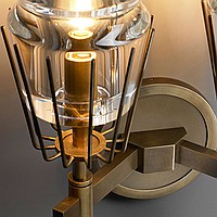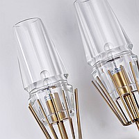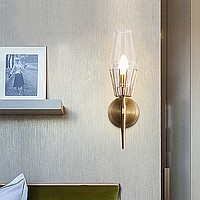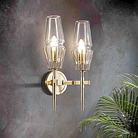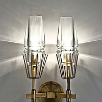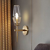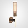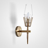 A status and strict wall lamp made of brass and a thick -walled glass ceiling in the postmodern style.