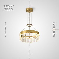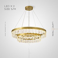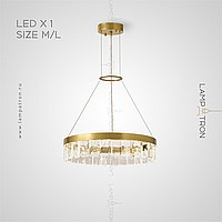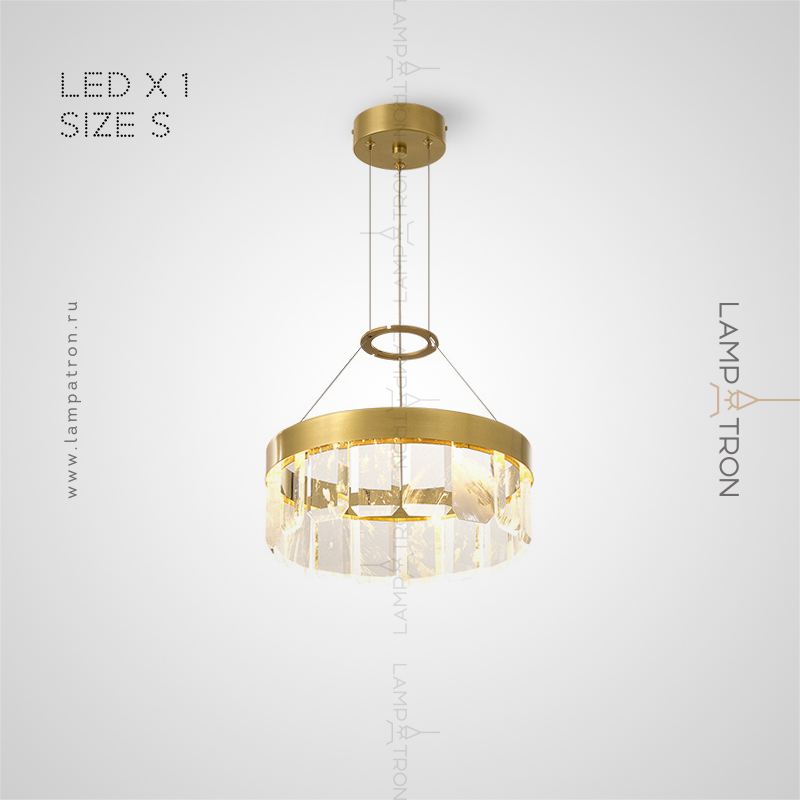 A series of ring LED chandeliers on string suspension with multifaceted crystal distortion dialivors