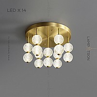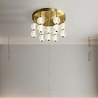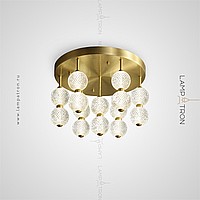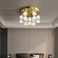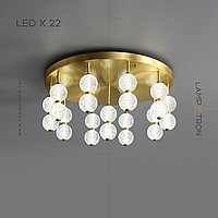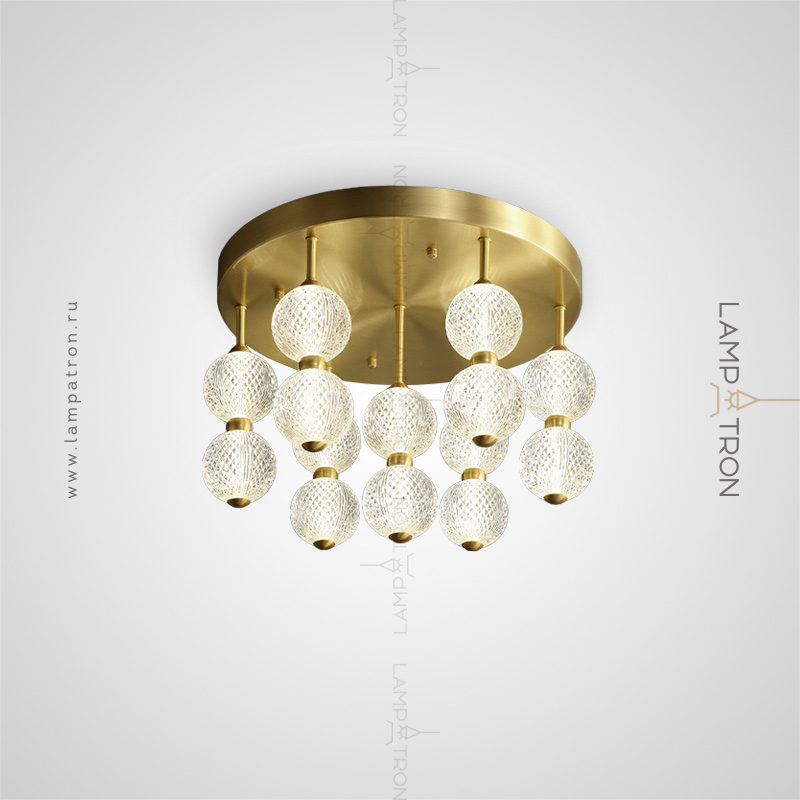A series of ceiling LED chandeliers with spherical embossed plafones on vertical racks