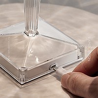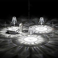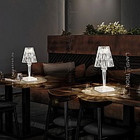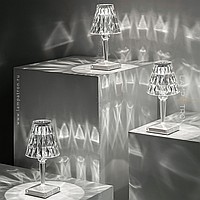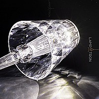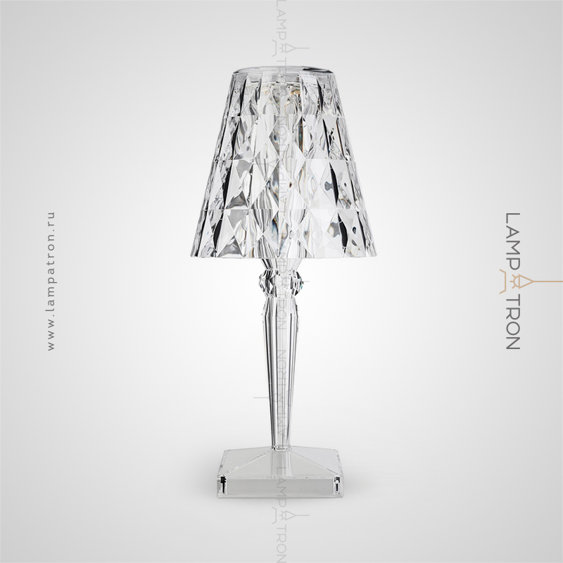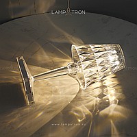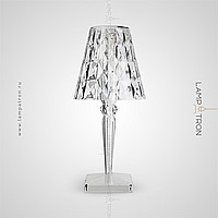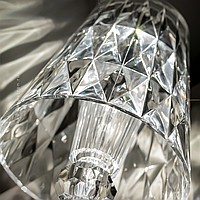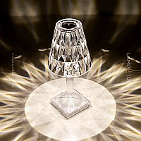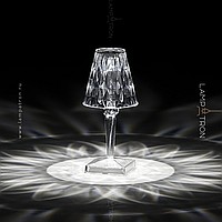 LED table lamp with a multifaceted cone -shaped ceiling on a relief leg