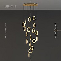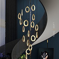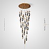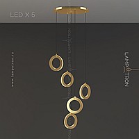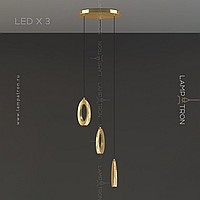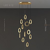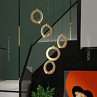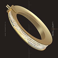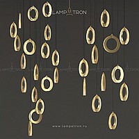 The finished combination of suspended LED lamps with ring -shaped plafants with transparent relief dispersion along the contour of the case