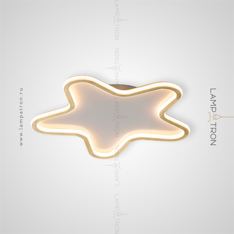 Ceiling lamp with internal and external LED lighting along the contour of the flat body in the shape of a star