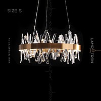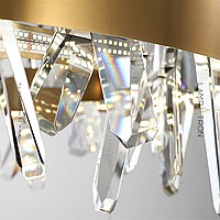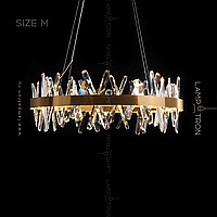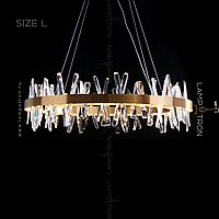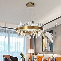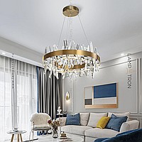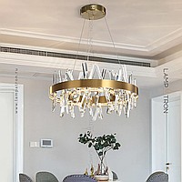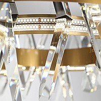 A series of designer chandeliers with LED circuits along the contour and crossed crystal stones on the ring frame