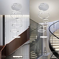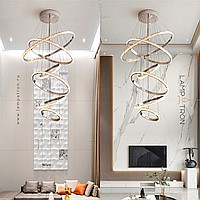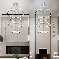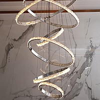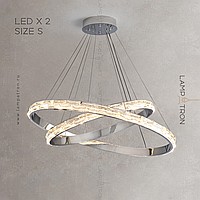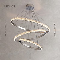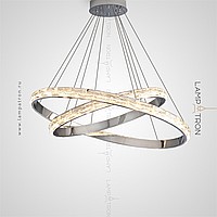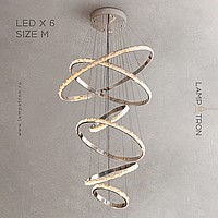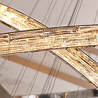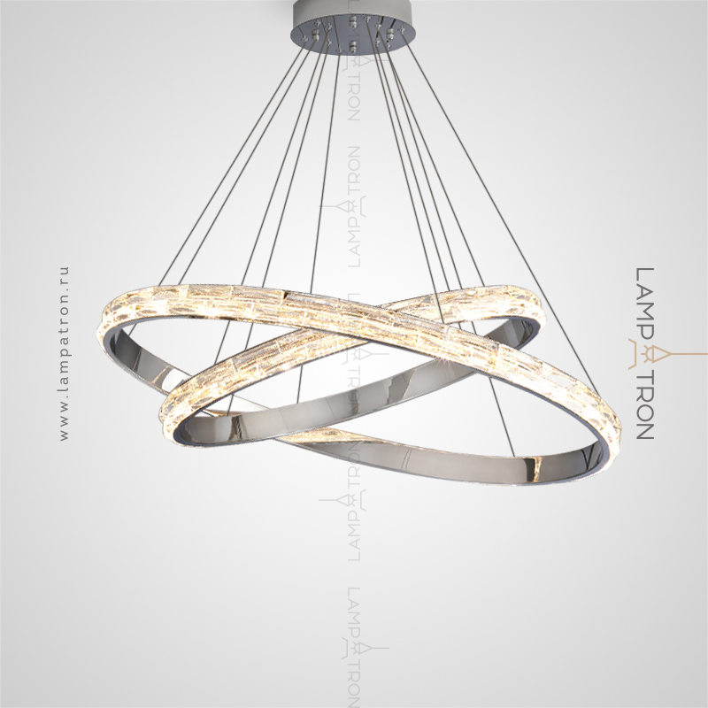 A series of LED chandeliers in the form of a combination of rings of different diameters with rectangular crystal distortion disperfielders