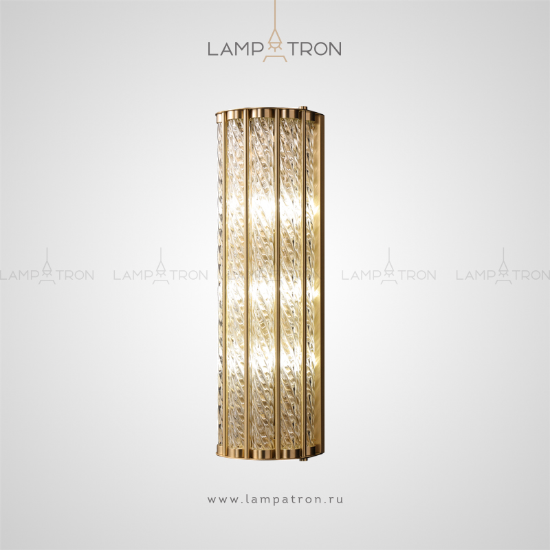 Wall lamp of rods with a spiral relief on a brass base