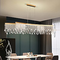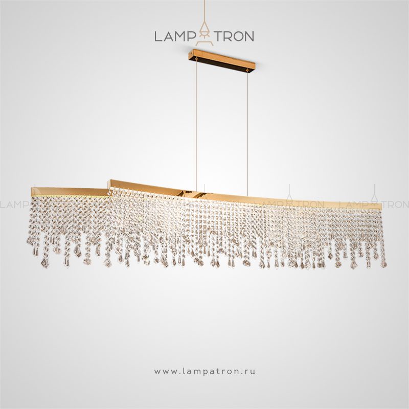 A series of rack LED lamps with a lampshade of pendants in the form of crystal beads on two curved rails