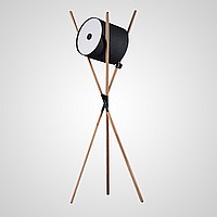 A designer floor lamp in the Scandinavian style on a wooden tripod.