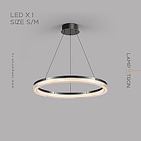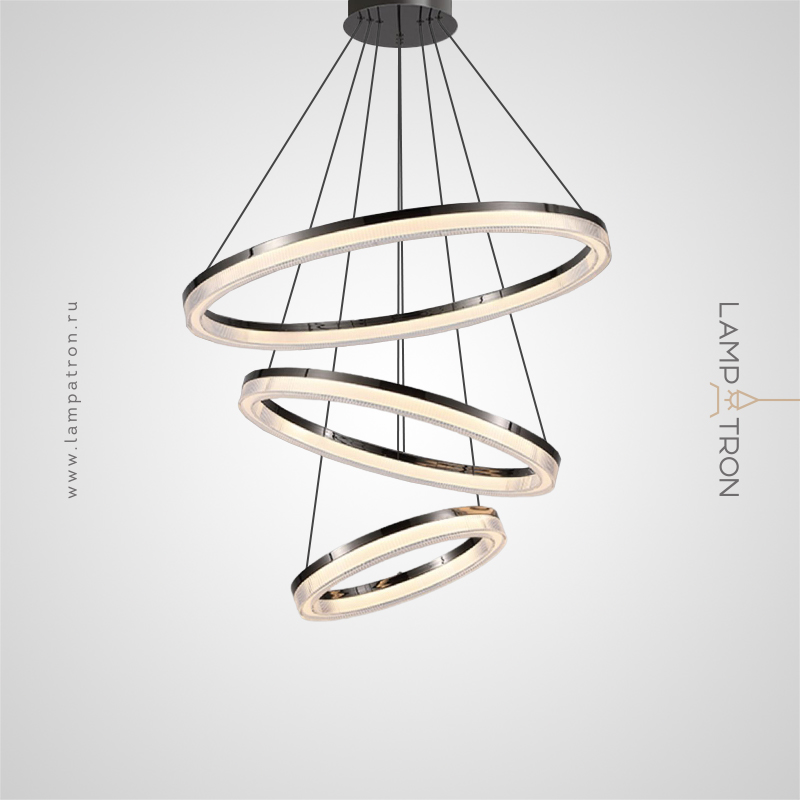 A series of LED chandeliers in the form of a combination of rings of different diameters with translucent acrylic diffusers