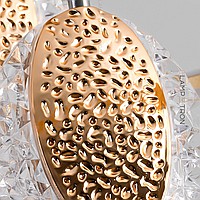 LED lamp in the form of a combination of a looped rail with LED lighting and three flat relief ceilings of a leaf-shaped shape