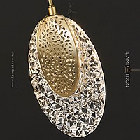 Suspended LED lamp with a flat relief plafon of leaf -shaped shape with a metal core