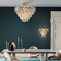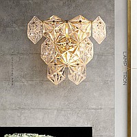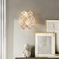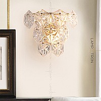 A series of wall lamps with decor made of glass elements in the form of stylized snowflakes