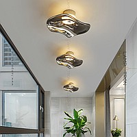 A series of ceiling LED lamps with curved disk -shaped ceiling glasses