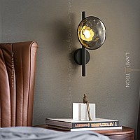A series of wall -mounted LED lamps with spherical ceiling ceiling glasses on vertical racks with round mount