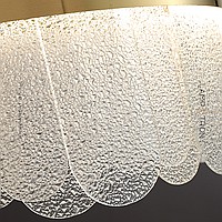 A series of rack lamps with embossed glass scatters along the contour of the looped frame with LED