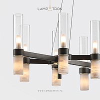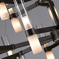 Chandeliers with a combination of diffusers in the form of cylinders made of glass and Spanish marble on a branching frame