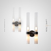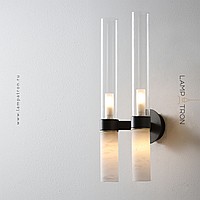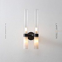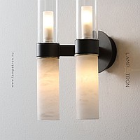 Wall lamps with a combination of cylinder-shaped diffusers made of glass and Spanish marble