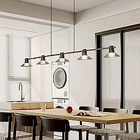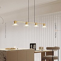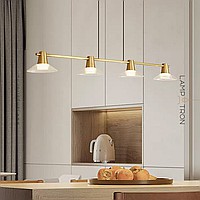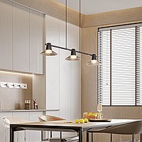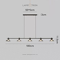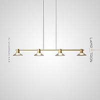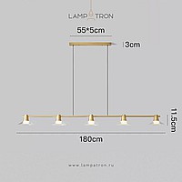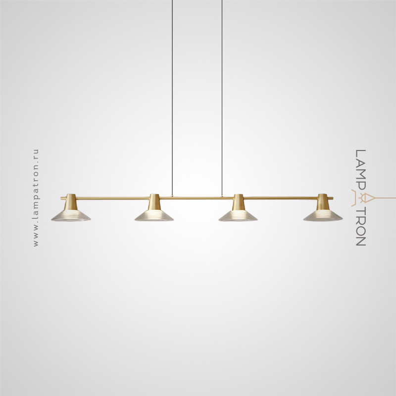 Pendant luminaire with conical glass diffusers on a brass rail