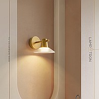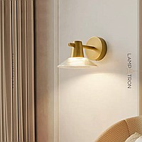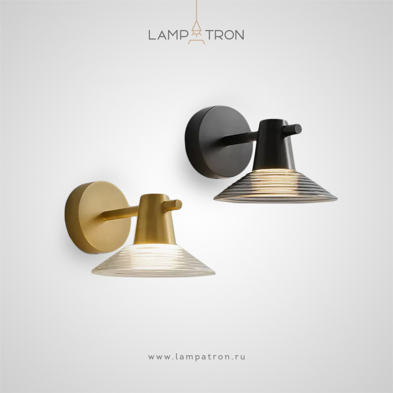Wall lamps with tapered glass diffuser on a brass rack