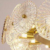 A series of ring chandeliers on a string suspension with disk -shaped scattering glasses