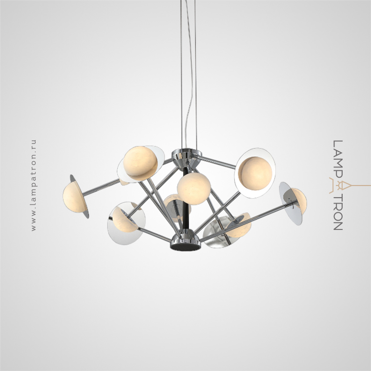 LED chandelier with two types of shades made of translucent natural alabaster