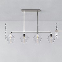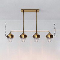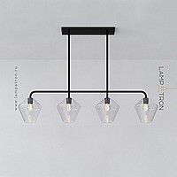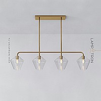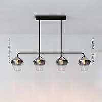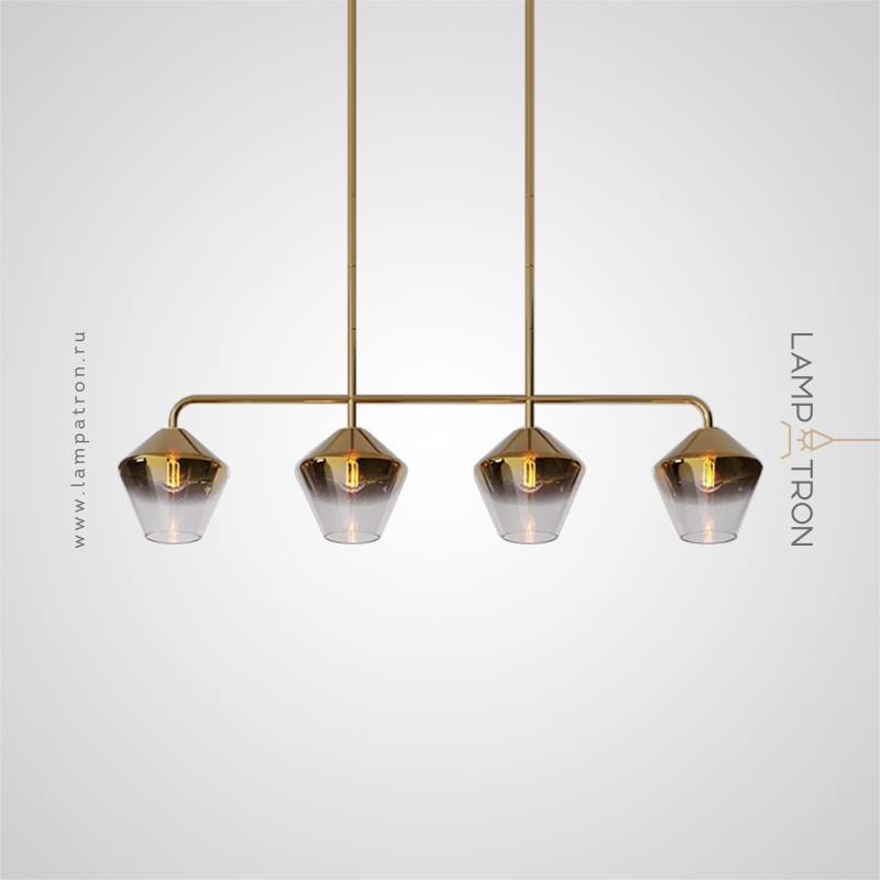 A series of in-line lamps with shades made of transparent and colored glass of rhombic shape
