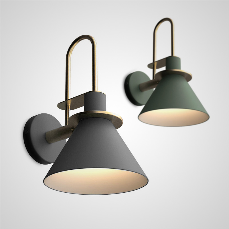 The latest model in an industrial style with a metal conical plafon and a cosmetic element with a brass finish.
