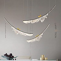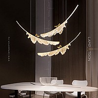 The finished combination of suspended LED lamps with leaf -shaped plafones and decorative birds made