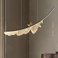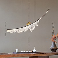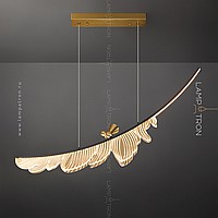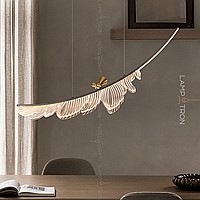 A designer suspension lamp with a leaf-shaped ceiling on an arched rail with LED backlight and a decorative metal bird