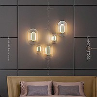 A series of wall -mounted LED lamps with embossed glass scatters of a disco and rounded shape