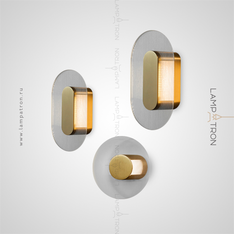 A series of wall -mounted LED lamps with embossed glass scatters of a disco and rounded shape