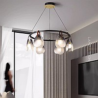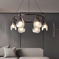 Ring chandeliers with diffusers in the form of a glass shell on a brass frame