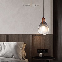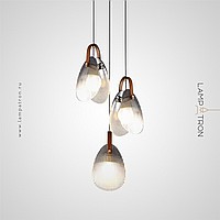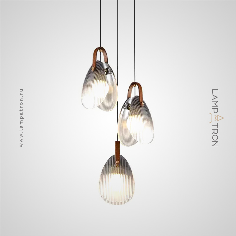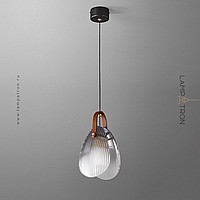 Pendant lamps with a disperser in the form of a glass shell on a leather strap