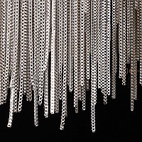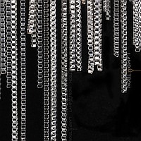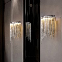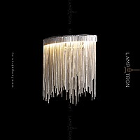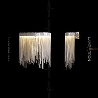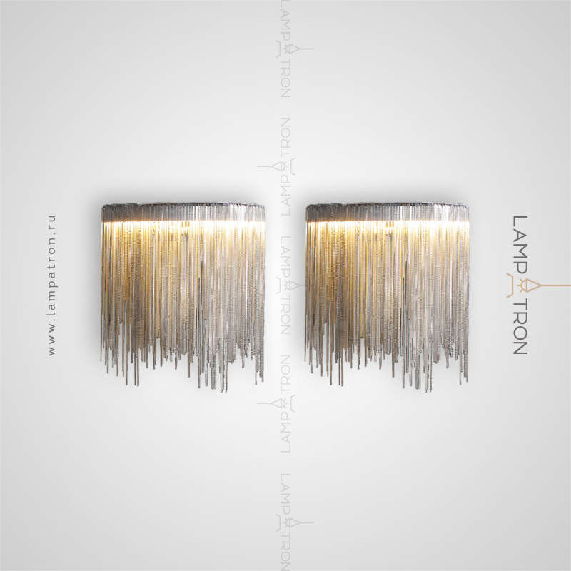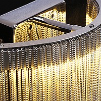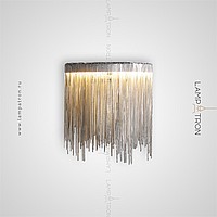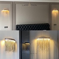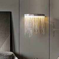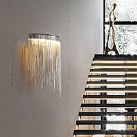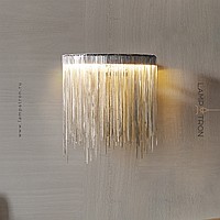 Wall LED lamp on a rectangular mount with a lampshade of chrome chains of different lengths