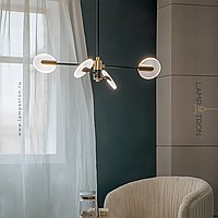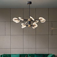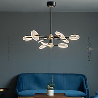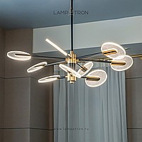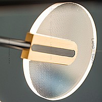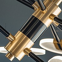 A series of LED chandeliers on a radial frame with disco -shaped swivels with a point pattern