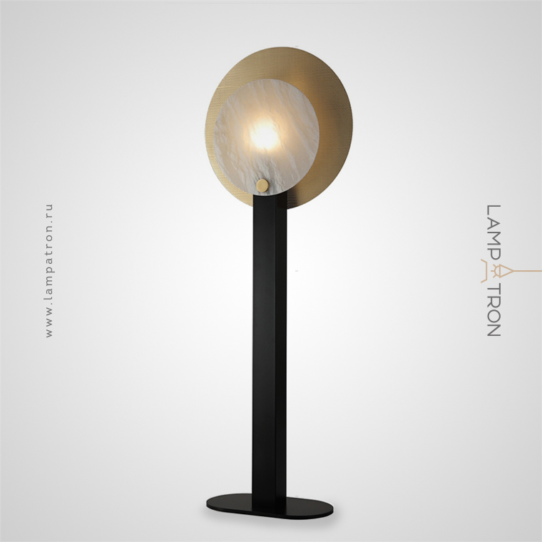 Floor lamp in the form of a perforated metal plate and a diffuser made of natural stone