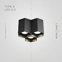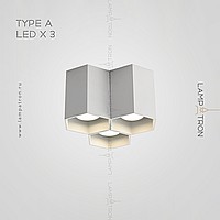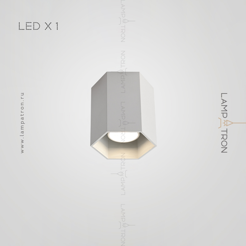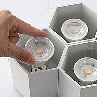 A series of dot LED lamps with metal plafoners in the form of hexagons