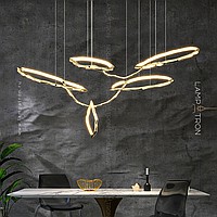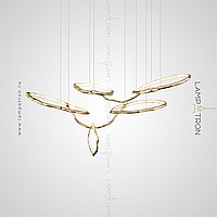 Multi-tier chandelier on an extensive frame with embossed rings with an internal LED lighting